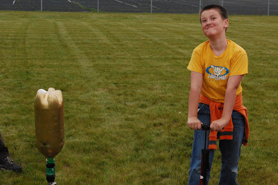 ...and BLAST OFF! His bottle actually flew really far and he had a blast. So glad I can share experiences like this with him, even if I have to wear a dorky uniform.
